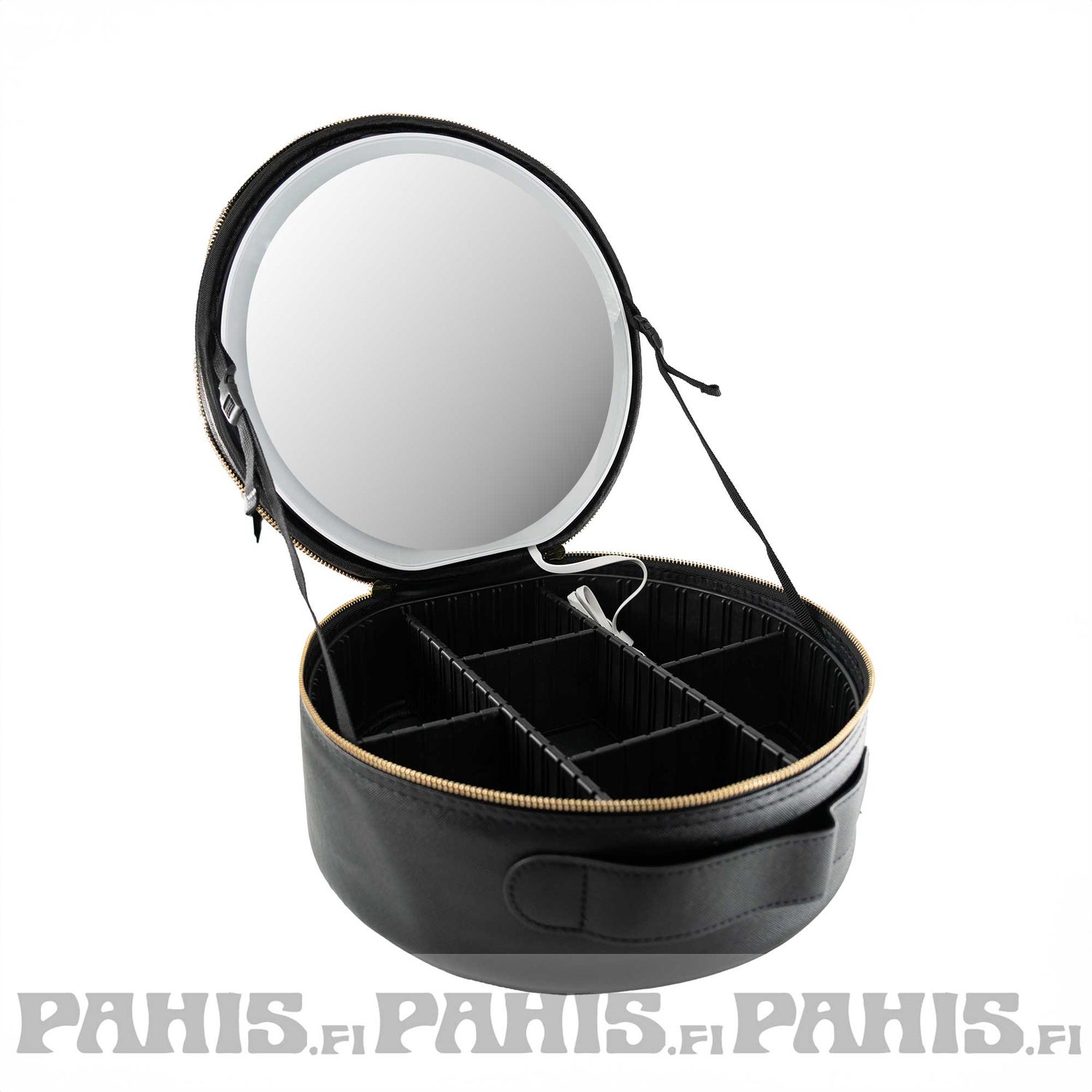 Meikkilaukku LED valolla - neliskulmainen, musta