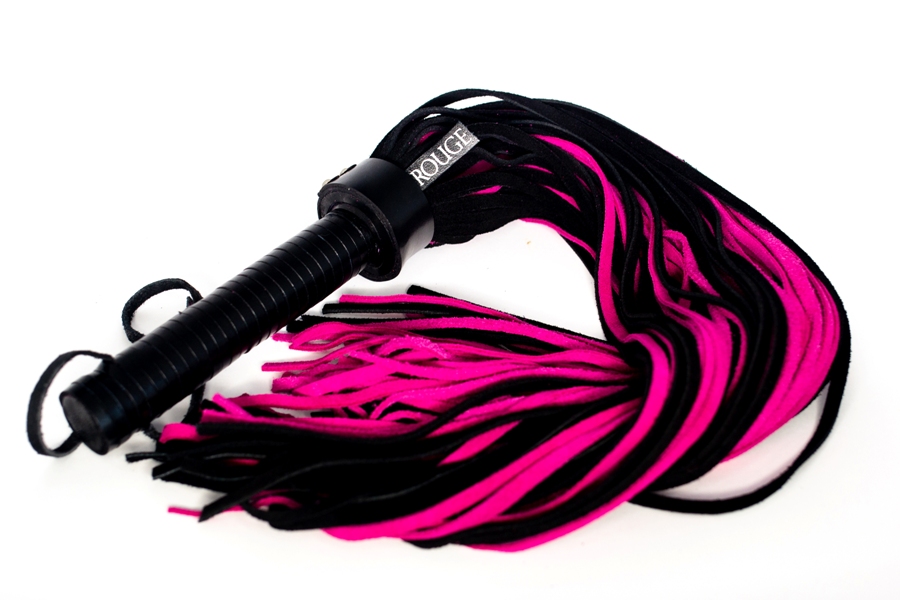 Rouge Leather Handle Suede Flogger – Black/Pink