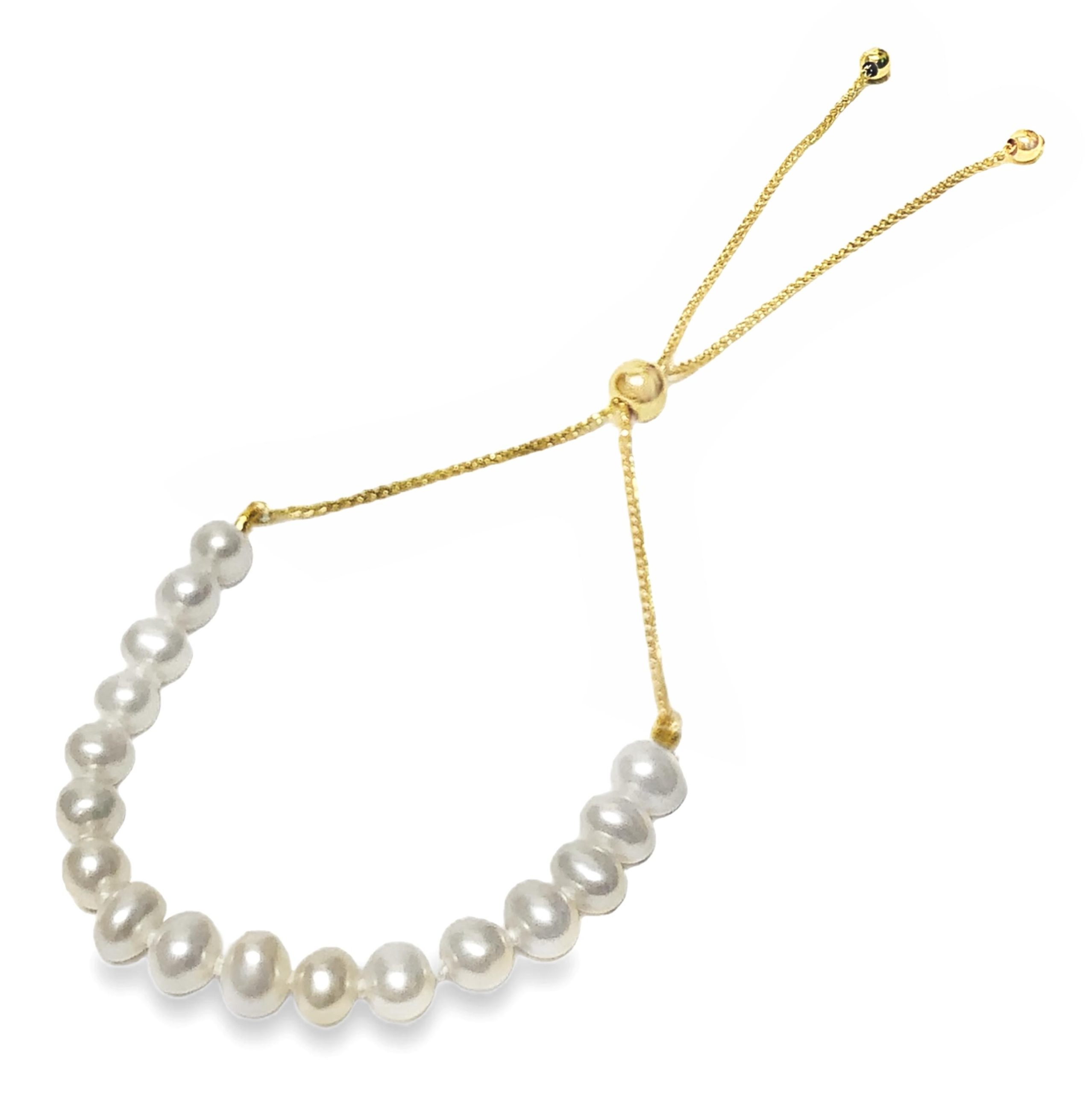 14K YELLOW GOLD CULTURED PEARL BOLO BRACELET...