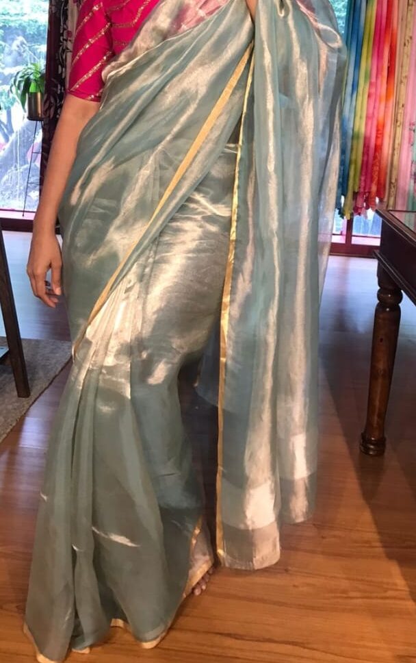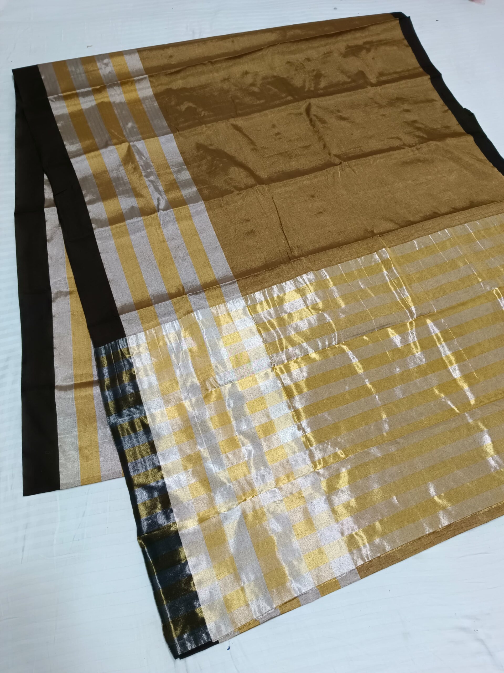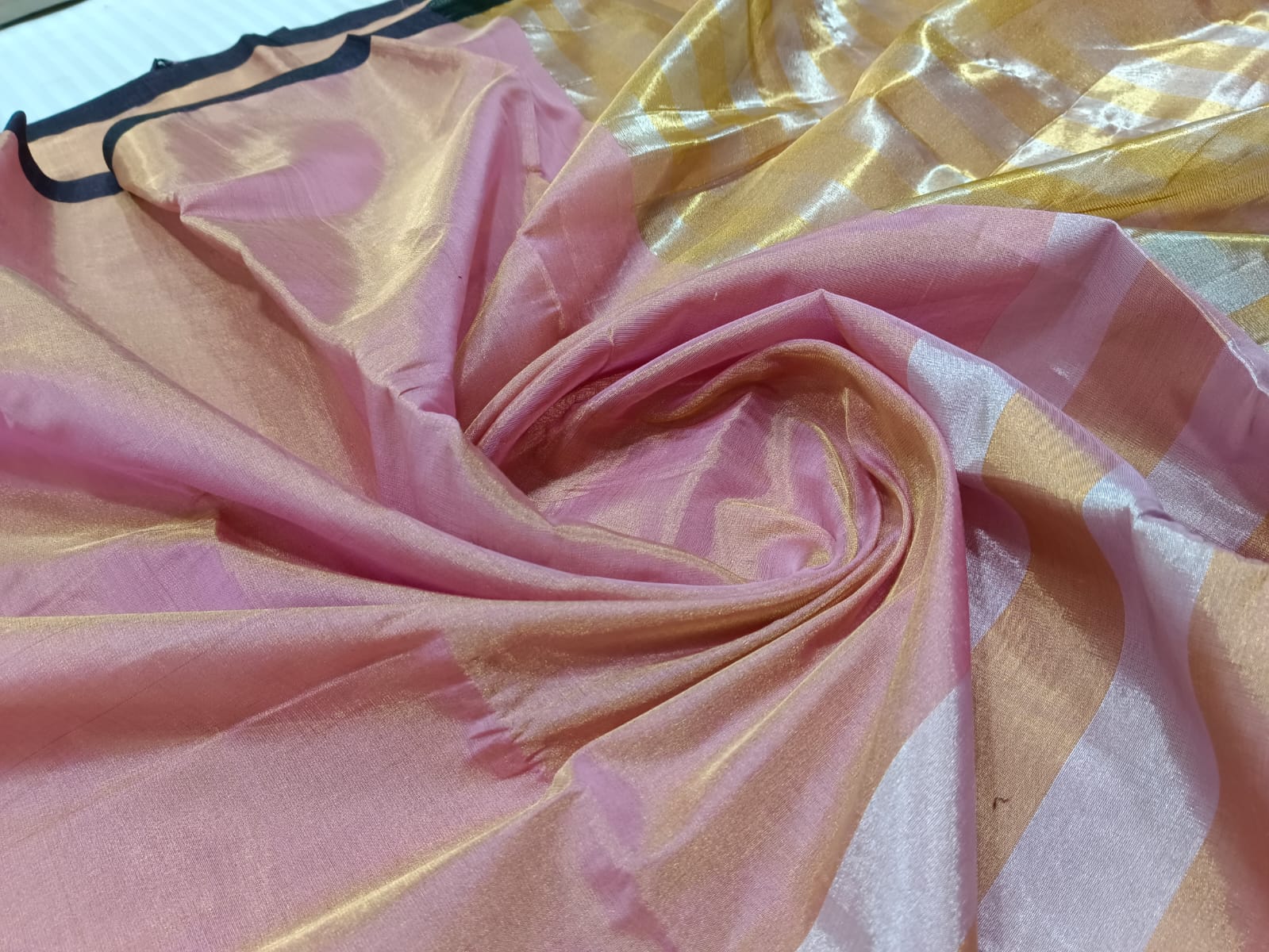 Pink color with silver Golden Stripe Chanderi Silk Saree
