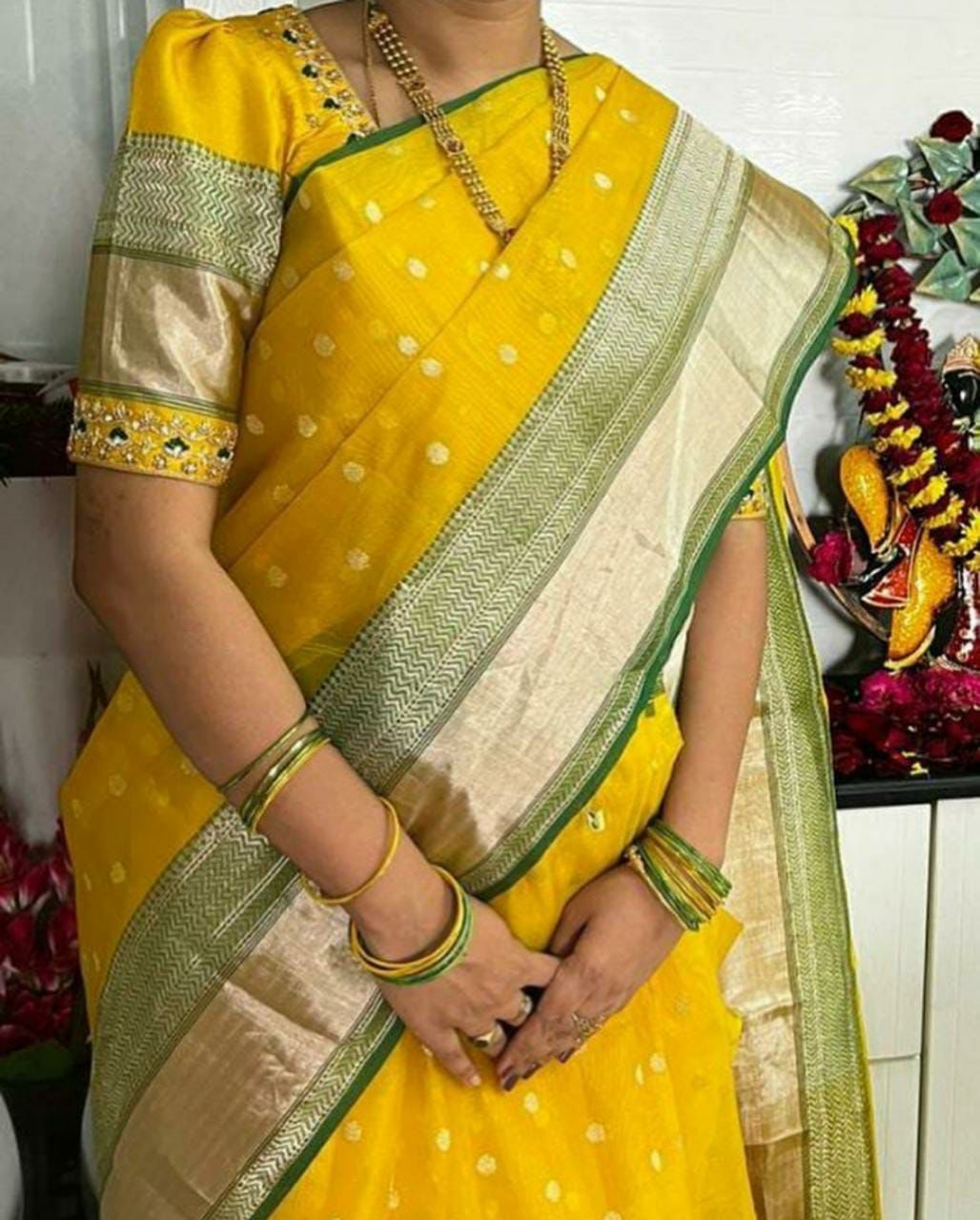 Traditional Handloom Designer minakari buta Chanderi saree with silk Mark Label
