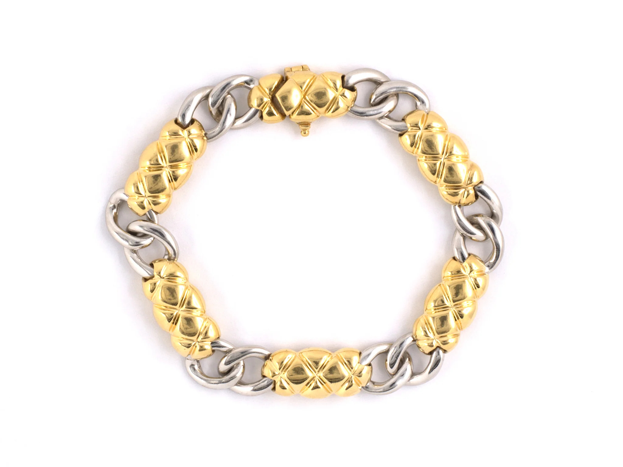 18K YELLOW GOLD & PLATINUM VINTAGE LINK BRACE...