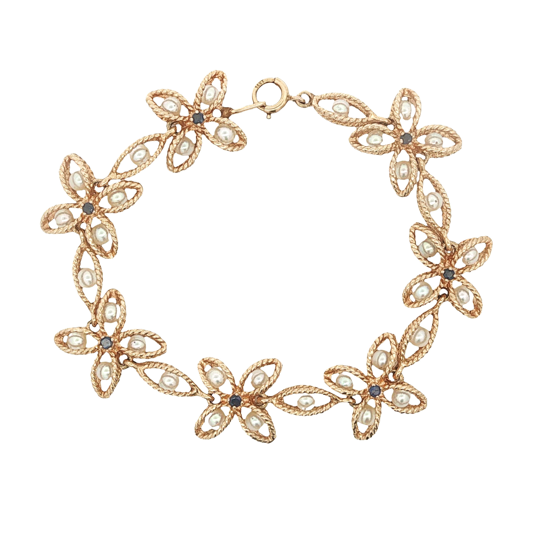 14K YELLOW GOLD CULTURED PEARL & SAPPHIRE BRA...