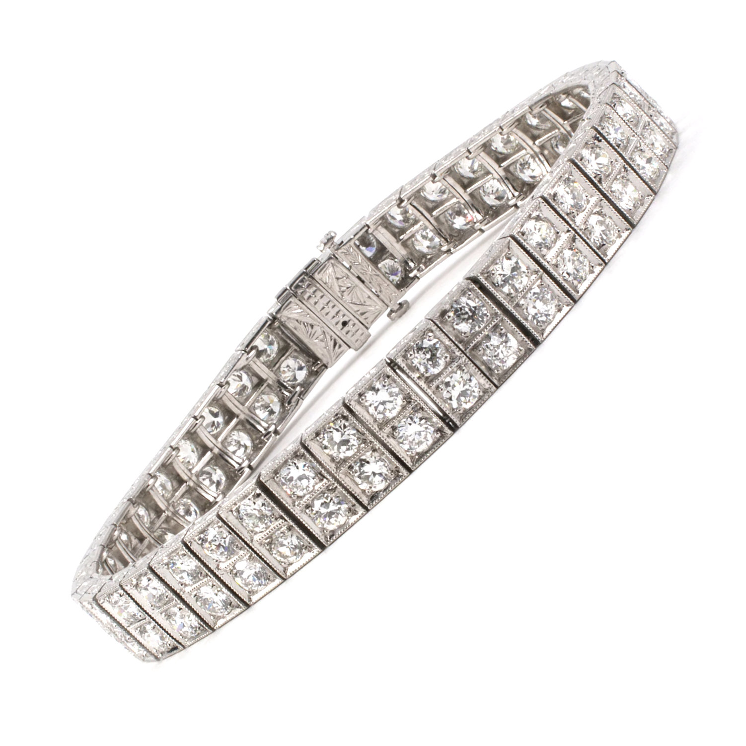 PLATINUM ART DECO VINTAGE DIAMOND TWO-ROW BLOCK BR...
