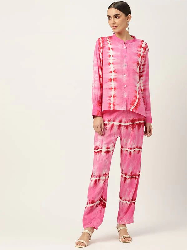 Rayon Hand Tie Dyed Pink Co-Ords Set for Women