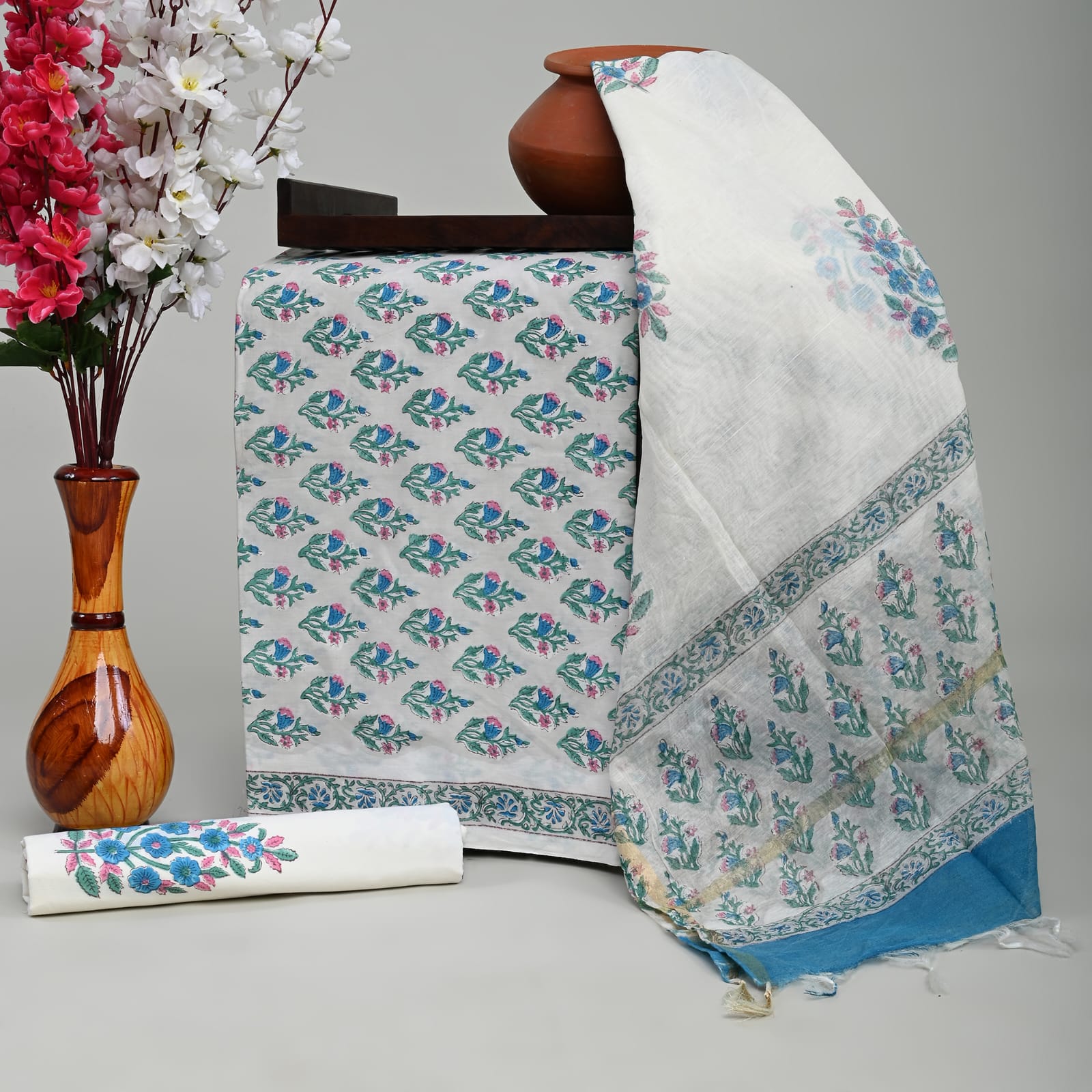 Pure Cotton Suits With Chanderi Dupatta